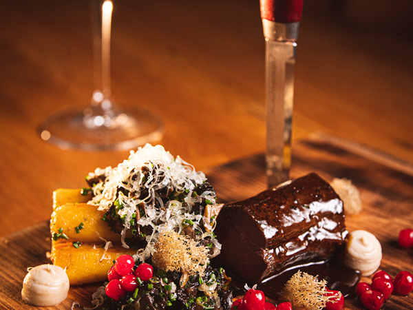 Kryddstekt viltkött med rostad jordärtskocka, gnocchi och trattkantareller