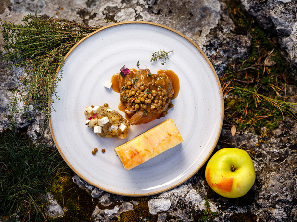 Äppelbakad lammlägg, rotfruktskaka med backtimjan, gotlandslinser i äppelsky, äppelchutney och Stafva Covré