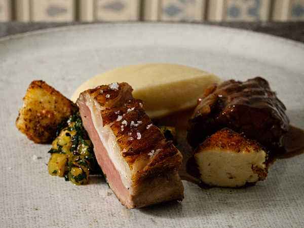 Torkat tunnbröd med lammsylta och lufttorkad lammbetta
