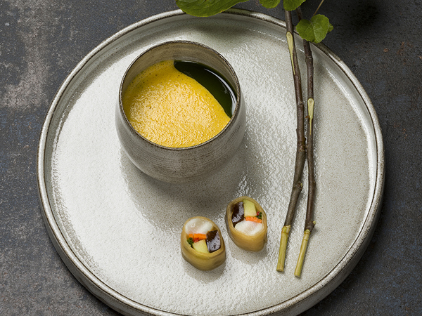 "Till de olika smakerna i varmrätten behövs ett smakrikt vin. I detta fallet passar ett vitt, torrt och ekfatslagrat vin där upplevelsen av fruktsötman finns och som ger en fin smakbrygga tillsammans med alkoholen, samt med en pigg syra som lättar upp det fylliga vinet i den finstämda rätten."