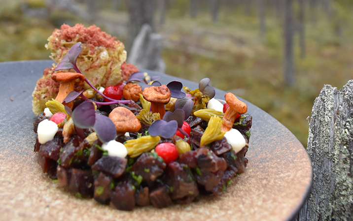 Vi valde att göra tartar på tjäder av den enkla anledningen att den är en del av det västerbottniska landskapet, och lite av en bortglömd fågel. Tjäder är kanske inte den enklaste råvaran att hitta för hemmakocken, men andra köttsorter går att använda i stället. Fördelen med att använda sig av tjäderä.r att dess viltsmak och magra kött vackert kompletterar smakerna i rätten vi skapat.