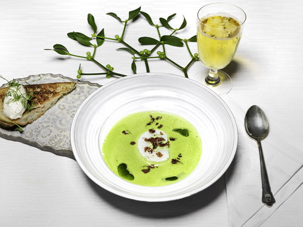 Grön ärtsoppa med dillfärserad mälargös