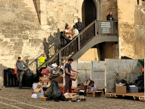 Vi besöker påvens sommarpalats som gett vinet dess namn, byggt i början på 1300-talet. Det stod här nästan intakt tills augusti 1944 då retirerande tyska trupper som använt det som ammunitionsförråd sprängde det i luften. Nu är det en utbränd ruin, lite symboliskt så känns det som röd Châteauneuf-du-Pape håller på att gå samma öde till mötes.