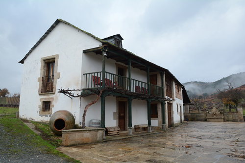 Beberides vineri ligger direkt vid landsvägen utanför Cacabelos i västra Bierzo. Där har vi bestämt möte, men det är bara första anhalten för sedan blir vi direkt eskorterade till Casar de Valdetruchas, ett restaurerat lantgods från 1200-talet. Resan hit sker på små vägar med gräsremsa i mitten så guidningen är befogad.