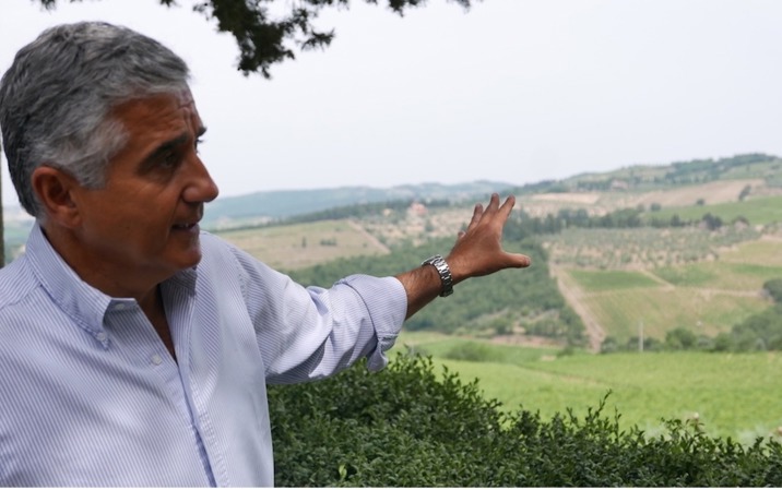 Giovanni Manetti på Fontodi, president för Consorzio Chianti Classico, pekar mot UGA Panzano