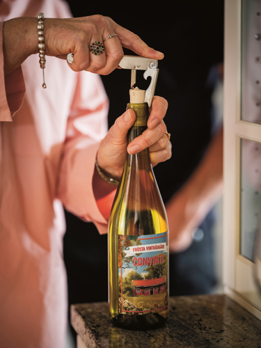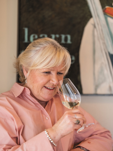 Hon och hennes make Per driver en av Sveriges nordligast belägna vingårdar för stilla vita viner. Den heter Frösta Vinträdgård och ligger på Oknön i Mälaren, mellan Enköping och Strängnäs. Vinet de gör kallar de Convinto – övertygad på ren italienska. Råvaran är den aromatiska druvan solaris som kommit att bli något av en signatur för Sverige.