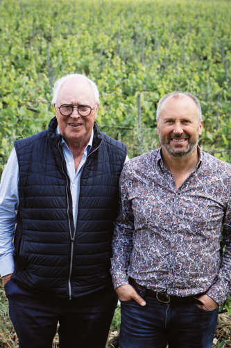 Just när Julien Brocard säger det kommer hans 78-årige far in i rummet. Jean-Marc Brocard slår sig ner vid bordet och får ett glas av sonens vin.