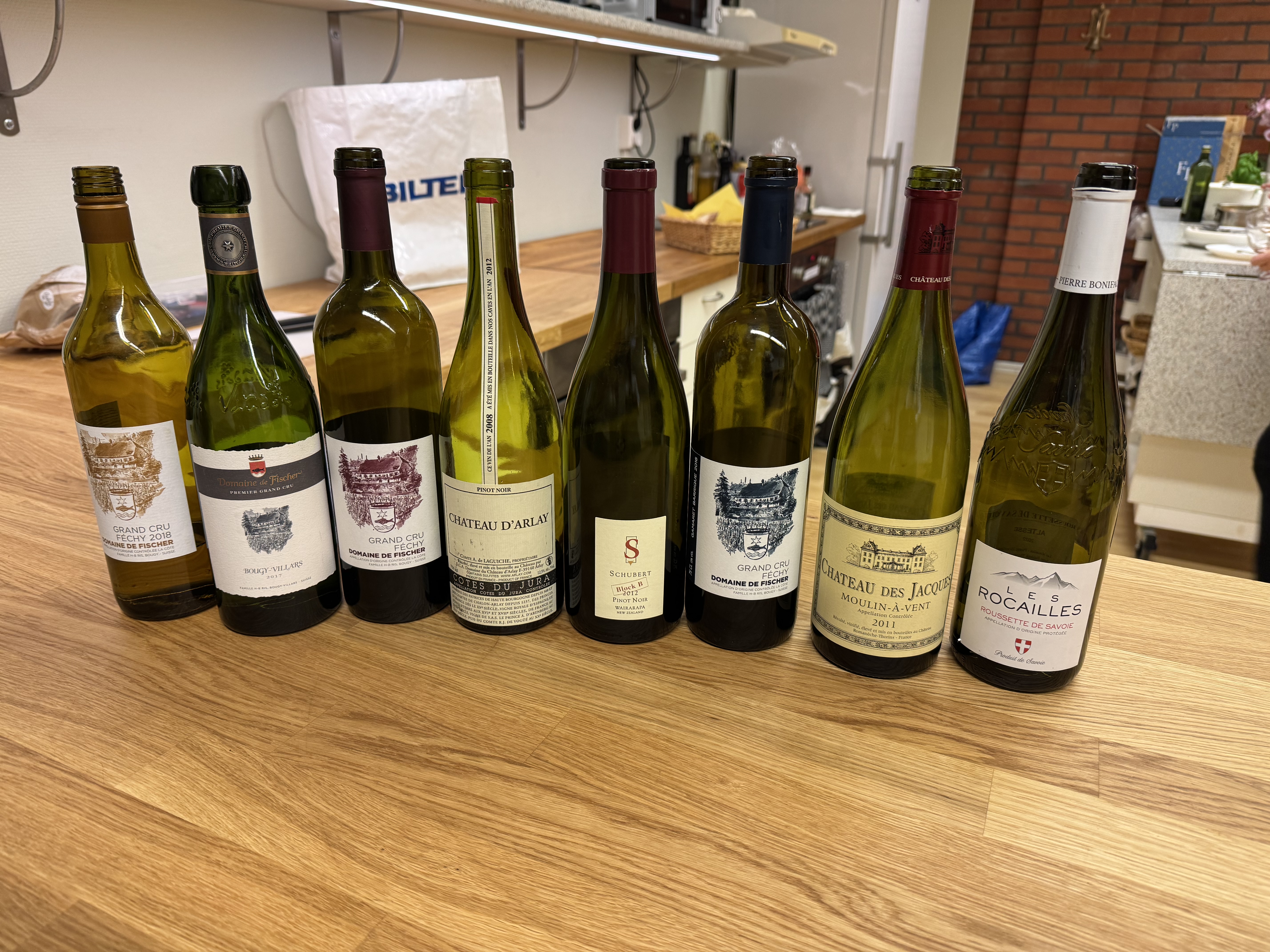 Till vinerna serverades en klassisk alprätt: Tartiflette. Henrik stod själv för matlagningen och bjöd på en generös och smakrik version av denna franska specialitet med potatis, lök, bacon och smält ost – en perfekt följeslagare till kvällens tema och viner.