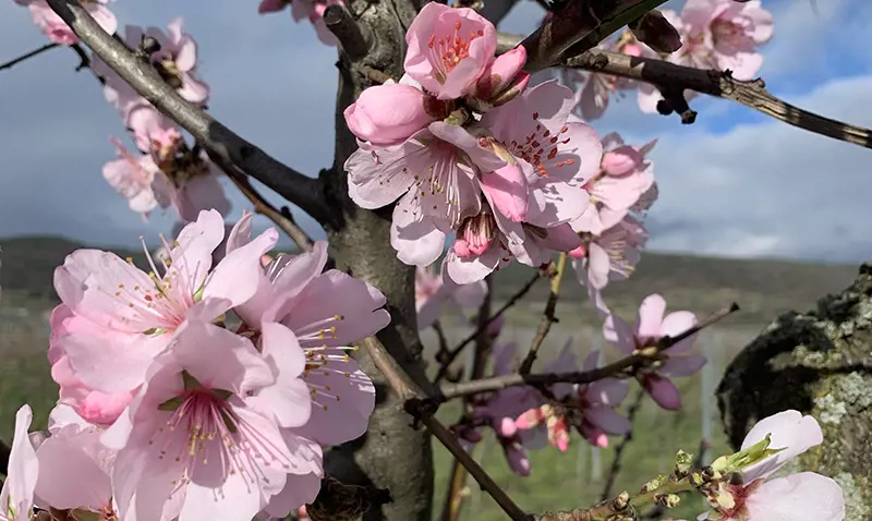 Ett viktigt vårtecken i Pfalz är de blommande mandelträden. Längs med delar av den 85 km långa Deutsche Weinstrasse (den tyska vinvägen) så bjuder de späda träden på efterlängtad rosa prakt när årets knoppar går i blom. Det sker oftast i mars och pågår till i början av april.