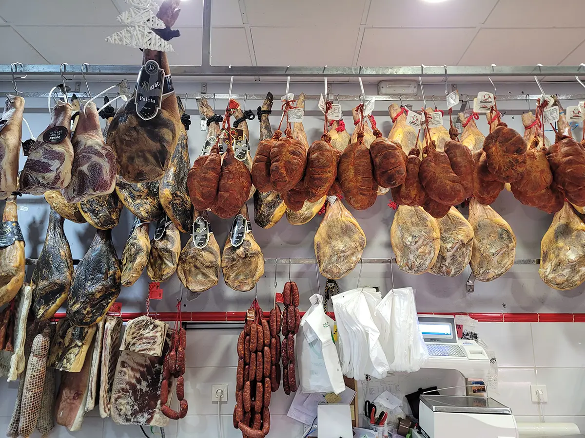 Fin charkbutik som man bland annat säljer Cecina de Waguy.