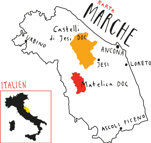 Vita viner från Italien har genomgått en uppenbar kvalitetsförbättring under de senaste decennierna, inte minst viner gjorda på verdicchio från Marche, vars bästa exempel är extremt lagringsdugliga. Denna utvecklingspotential och de jämförelser med chablis som ibland görs fick oss att sätta kurs mot epicentrum för Marches vitvinsproduktion.
