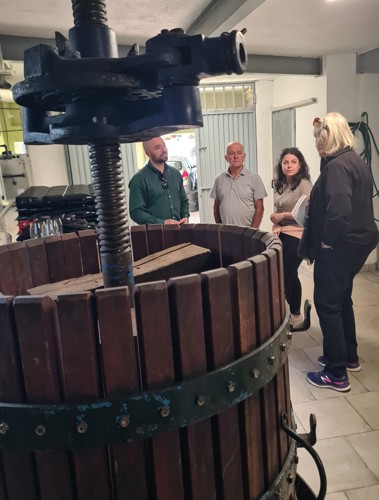 Det vin vi provar skördades i början av september 2023. Ett helt manuellt arbete. Hela familjen är med. De vita druvorna skördades före de röda. Så här på våren 2025 har det vita vinet ytterligare några månader kvar i tank innan det ska buteljeras. Det röda vinet från årgång 2024 har däremot precis buteljerats, 300 flaskor, och ska därefter ligga två till tre månader för att mogna (crianzar). Årgång (cosecha) 2024 kan inte provas ännu. Vi provar istället 2023 års vin.